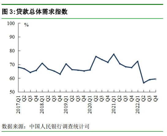 贷款总体需求指数为59.5%,比上季上升0.5个百分点,比上年同期下降8.2个百分点。分行业看,制造业贷款需求指数为62.2%,比上季上升1.6个百分点;基础设施贷款需求指数为60.6%,比上季下降0.7个百分点;批发零售业贷款需求指数为57.1%,比上季上升0.8个百分点;房地产企业贷款需求指数为43.7%,比上季上升3.1个百分点。
