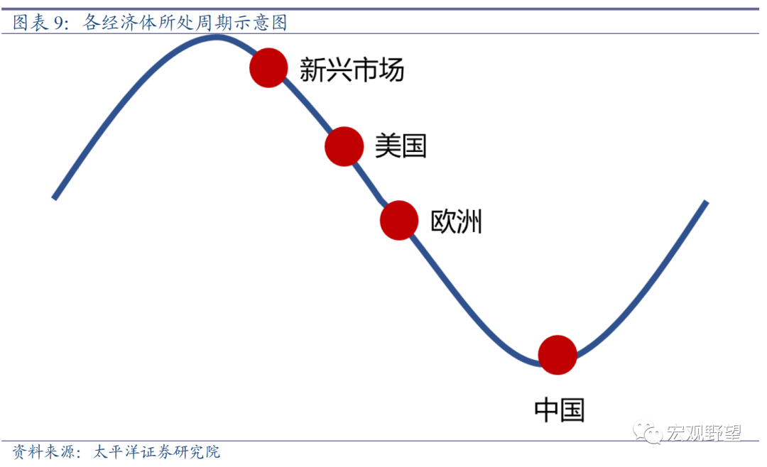 从当前的经济周期角度来看,我们认为中国正处于周期的底部,即将进入复苏周期之中;欧洲和美国等发达经济体正在进入衰退周期之中;新兴市场的整体表现相对较好,除了部分高债务国家受到了美联储加息冲击较大之外,多数新兴经济体相对健康,尤其是亚洲新兴市场和资源型国家。从这一趋势上看,2023年可能是中国和其它新兴市场表现相对优于发达经济体的一年。