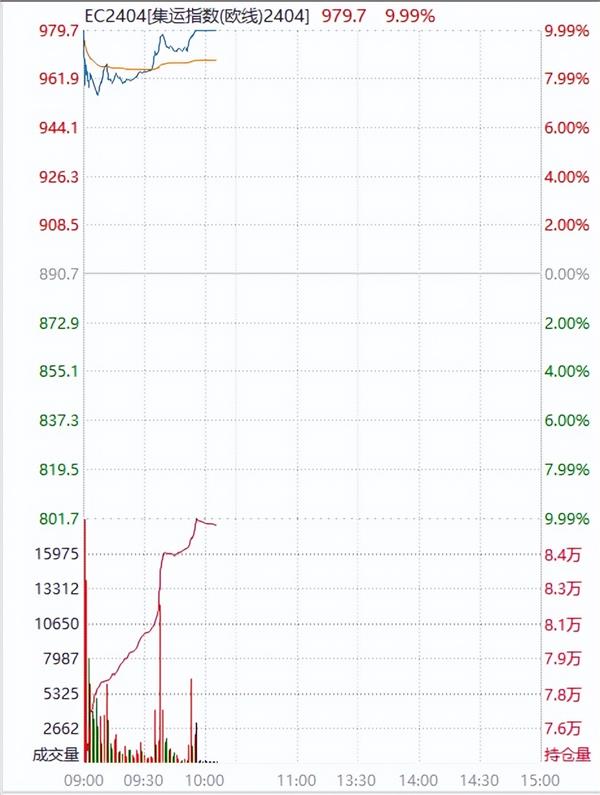 另外,12月18日早间,集运指数(欧线)期货主力合约开盘涨停,涨幅约10%;上午开盘后继续保持较大涨幅,盘中再度封住涨停板。