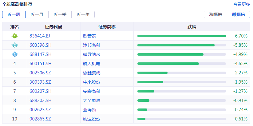 个股涨跌幅