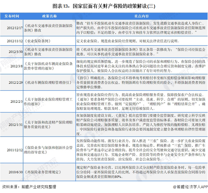 “十三五”以来,国家发改委、银保监会等相关部门也陆续出台相关政策推进财产保险健康发展,具体内容包括扩大财产保险保障范围、实行保险综合实力、偿付能力等监管,维护保险市场秩序,制定保险费率行业标准,化解突出风险等,重点改革有序推进,促进保障作用充分发挥。