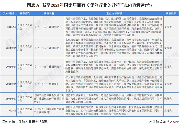 “八五”计划(1991-1995年)至“九五”计划(1996-2000年)时期,国家层面提倡:大力发展保险业,改革保险制度;从“十五”规划开始,规划主要重点在健全社会保险制度和社会保险体系;“十二五”至“十四五”期间,规划明确了要加快完善社会保险制度,明确了深化保险公司改革。到“十四五”时期,根据《“十四五”规划和2035年远景目标刚要》,改革社会保险制度健全全民医保制度成为“十四五”时期的重要任务。