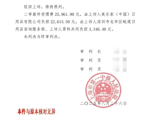 本质视点最新消息,2025年8月26日,上海市第一中级人民法院就美乐家(中国)日用品有限公司诉深圳龙华区毗堤日用品服务部及其经营者胥科(以下用其笔名:天问)服务合同纠纷一案做出二审暨终审判决。