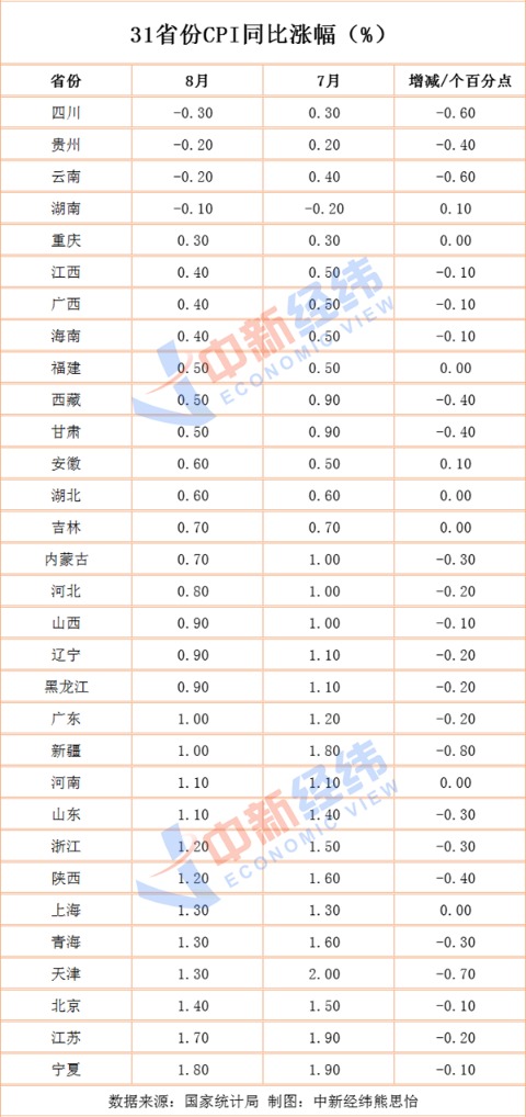 (原标题:31省份8月CPI出炉:11地涨幅低于全国 4地物价降了!)