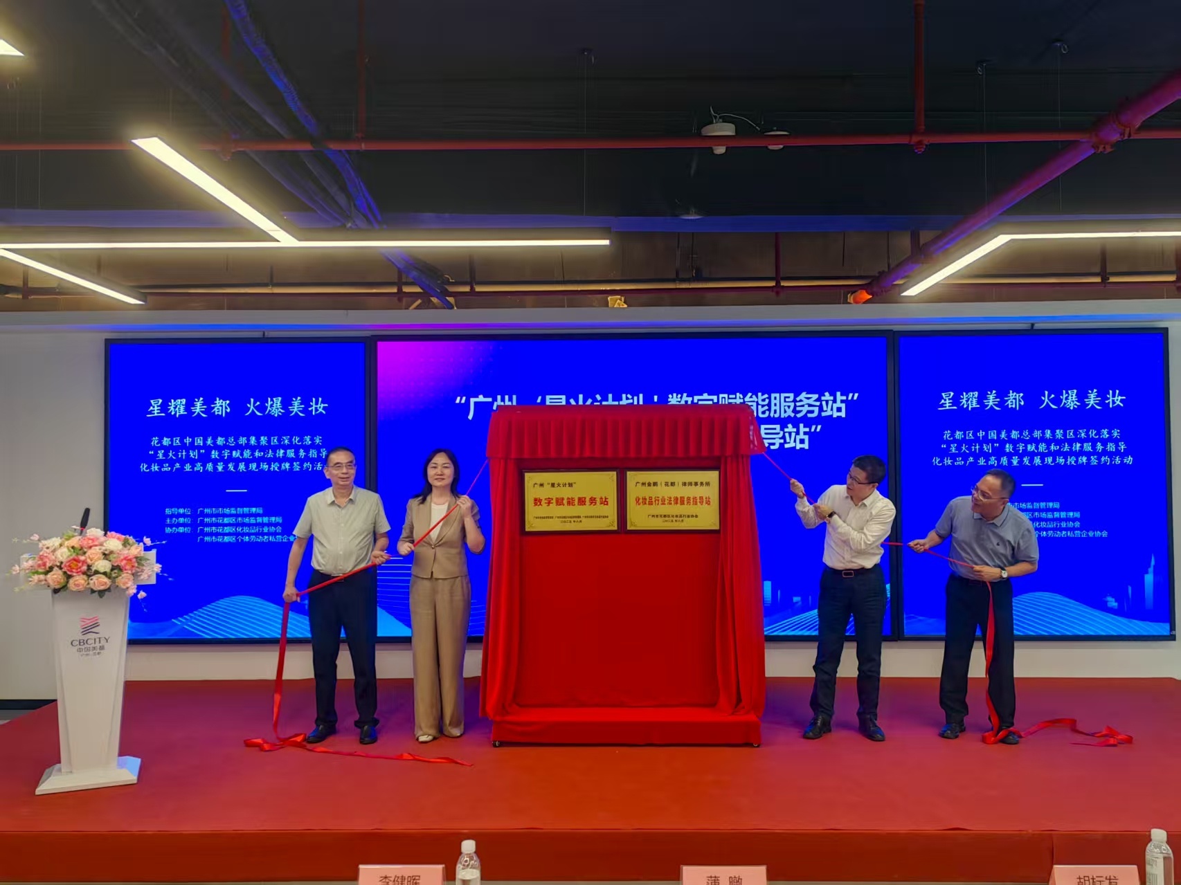 8月21日,“星耀美都,火爆美妆”——花都区中国美都总部集聚区深化落实“星火计划”数字赋能和法律服务指导化妆品产业高质量发展现场授牌签约活动在广州花都中国美都总部集聚区举行。活动现场,由广州市市场监管局、广州市花都区市场监管局共同为花都区化妆品行业揭牌“星火计划数字赋能服务站”和“化妆品行业法律服务指导站”。