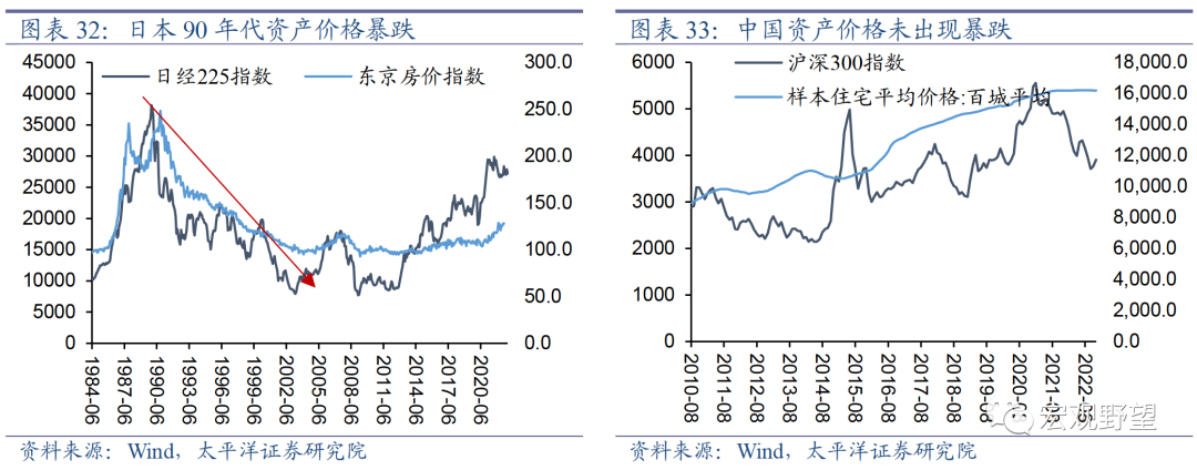 但我们认为中国过去两年的经济下行只是“类资产负债表衰退”,并非真正的资产负债表衰退。资产负债表衰退理论的重要前提是资产价格崩溃,比如美国1929年大萧条,日本1990年泡沫破裂,美国2008年金融危机等,都是房价与股市的迅速崩塌引发了长期的去杠杆进程。但中国并未出现资产价格的大幅下跌。房价没有全面下行,股市下跌幅度也可控。而且中国资产在此前的泡沫化程度并不大,也不具备长期下跌的基础。虽然一些房企可能陷入了资产负债表衰退的困境,但这不是全局性的。所以,中国企业和居民在过去两年的衰退中主要受损的是现金流,而非资产负债表。其困境也可以通过现金流的改善而出现较快的扭转。所以我们认为中国此前的衰退只是普通的经济衰退,而非资产负债表衰退。中国经济衰退是短期的而非长期的。在疫情防控政策退出、居民和企业预期稳定之后,中国经济有望迎来较好的复苏。