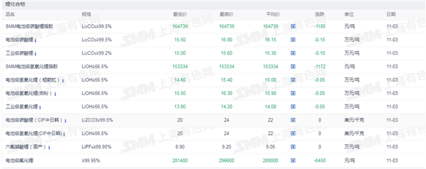 证券之星新能源车行业周报:据上海有色网,本周五SMM磷酸铁价格为1.17-1.23万元/吨,均价1.20万元/吨,较上周五跌100元/吨。本周,磷酸铁价格下跌。因下游订单变数较大,磷酸铁月度谈单较谨慎,为获得市场份额,磷酸铁厂被迫让“利”出售。本周,原料价格稳定,企业生产成本稳定,相对销售价格,成本高企。原料端,磷酸铁按需生产,新产线集中在年底前调试完毕,市场供应量充足。需求方面,四季度需求惨淡,对磷酸铁的需求量有所减少。随着月度谈单的结束,散单的成交亦趋于平淡,预计,下周磷酸铁价格持稳。
